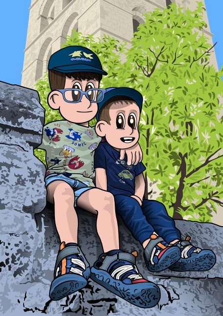 Creación de retratos o recreaciones de situaciones a partir de fotos de los protagonistas de la ilustración.